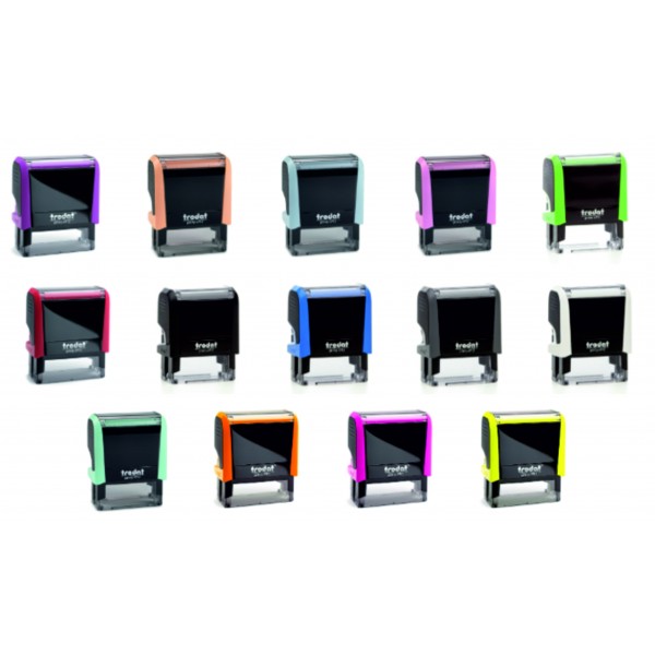 Samobarvící razítko Trodat Printy4 4912. Maximální tisková plocha: 47 x 18 mm; Doporučený počet řádků: 5; Barva otisku: základní barvy: černá, modrá, červená, zelená, fialová; Cena je za kompletní razítko;